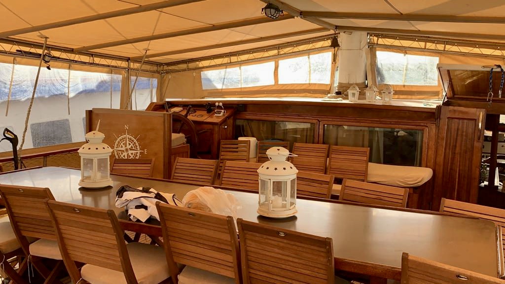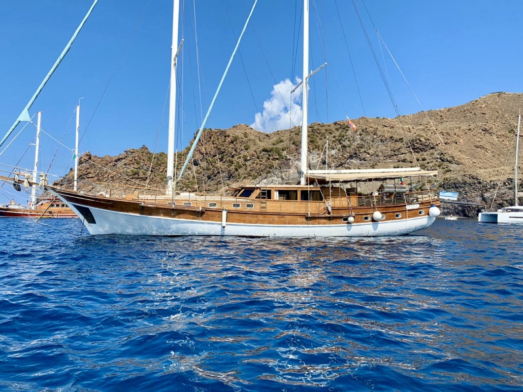 Hande è un favoloso Caicco costruito tutto in legno massello con tecniche moderne, ma con disegno e linee tradizionali. Hande è un Caicco molto robusto con ampi spazi esterni, con il ponte in teak, armata a ketch (due alberi) con rande auriche e fiocco. Hande si distingue dagli altri Caicchi per il suo ampio prendisole  molto arieggiato. A disposizione degli ospiti un Barbecue professionale per conferire un aspetto festoso e accogliente agli ospiti. Le grigliate sono un MUST su Hande!!!. Tutte le cabine hanno bagno  autonomo con Box doccia . Cabina indipendente per l’equipaggio. con servizi autonomi