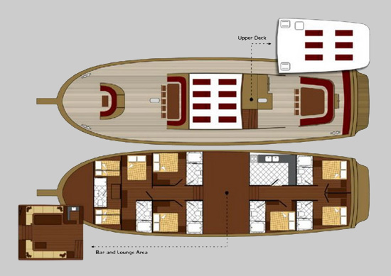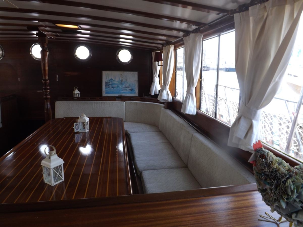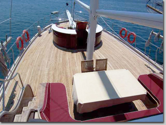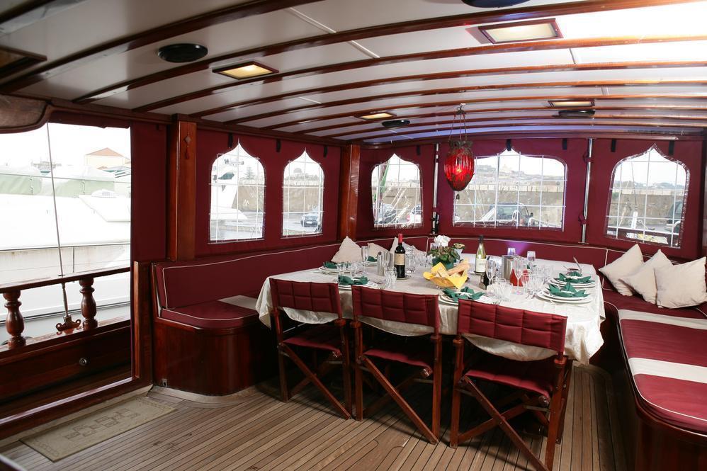 Tersane e’ uno dei caicchi piu’ sontuosi che navigano nelle isole Eolie. Costruito a Bodrum nel 2007 ha appena subito tutta una serie di rifacimenti e migliorie che lo posizionano al top della categoria. Dispone di 6 grandi cabine doppie, tutte con bagno privato, box doccia e aria condizionata. All’esterno, a poppa c’e’ una zona ombreggiata con tavolo e divani, sul ponte due livelli calpestabili con zone prendisole e verso prua un altro tavolo per chi preferisce stare al sole. Grande importanza e’ data alla cucina e lo chef, formatosi alla scuola alberghiera e poi in grandi alberghi, coccola i suoi ospiti con deliziosi piatti della cucina siciliana e mediterranea.