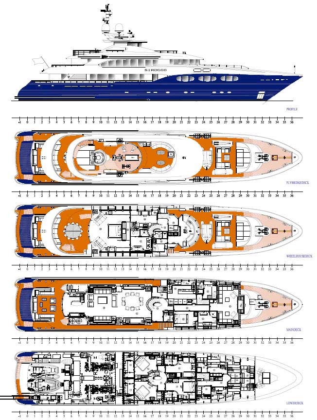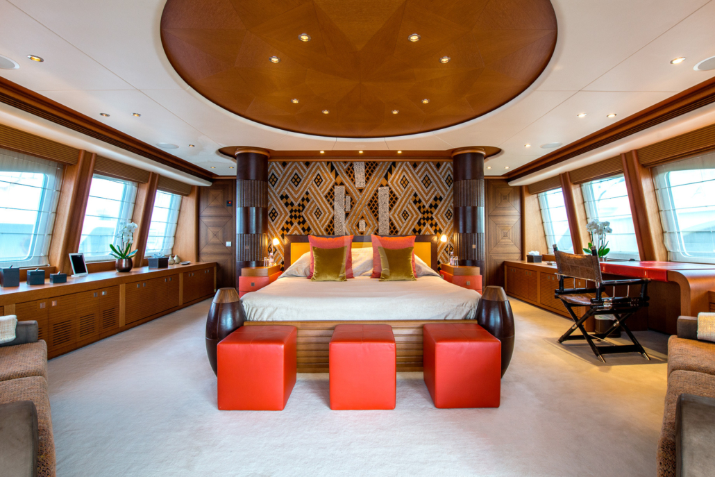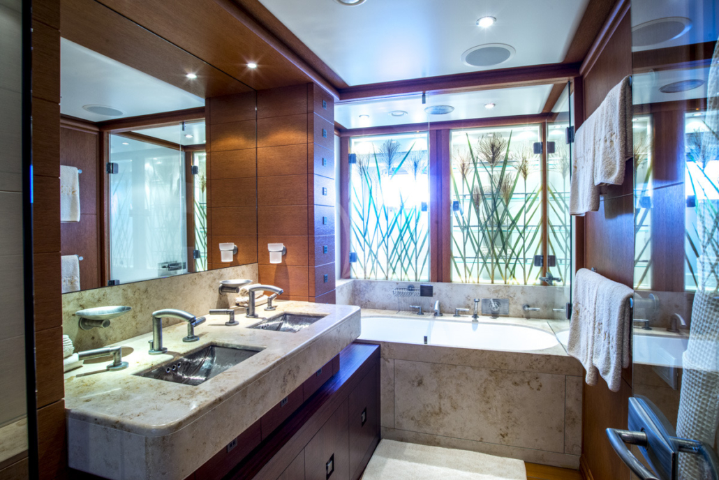 Il megayacht di lusso SIROCCO offre sistemazioni spaziose e accoglienti per un massimo di 12 ospiti in charter in 6 cabine ben arredate e di categoria superiore. Lo stateroom matrice è sulla piattaforma superiore con le viste 180 ° e l’accesso alla piattaforma poppiera parzialmente ombreggiata. La cabina gode di un layout a tutto baglio, letto king size, sedili in pelle amore, vanità, armadio e deluxe en-suite con vasca in marmo. La cabina VIP si trova sul ponte principale a dritta con un letto matrimoniale, un divanetto e un bagno privato con vasca. Sottocoperta sono 2 cabine doppie entrambe con letti queen size, sedili amore e en-suite con vasche. Altre 2 cabine ospiti offrono letti singoli affiancati e bagni privati con doccia. Nessuna attenzione al dettaglio è stata risparmiata dal design intricato e ponderato, tocchi come l’oro che lui e il suo affondano nella cabina armatoriale, mentre pellami e pellami pregiati trasmettono eleganza e stile.